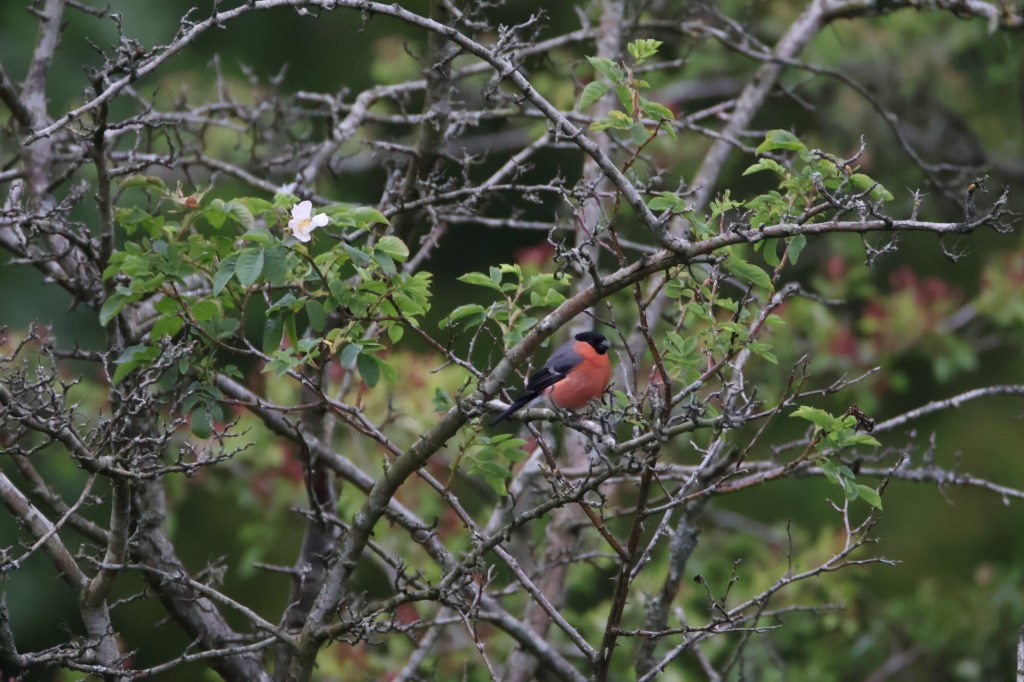 Another bird I’ve come to spot by hearing its call is the bullfinch. The male is very striking, always a pleasure to see.