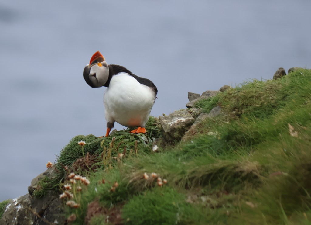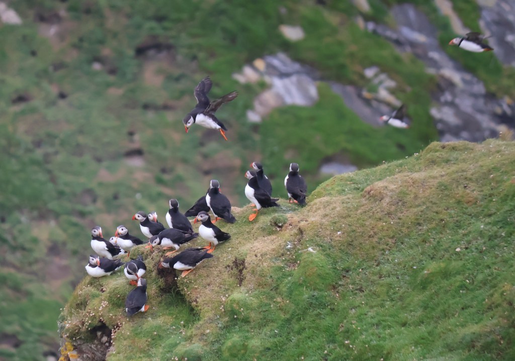 Puffins only come onto land to reunite with their partners and breed. Once a pair’s single “puffling” has fledged they return to the sea and have nothing more to do with their offspring. With it being the end of July there were hardly any puffins left and most burrows were now empty again. However there were a couple of dozen still at Sumburgh Head in the far south of Shetland.