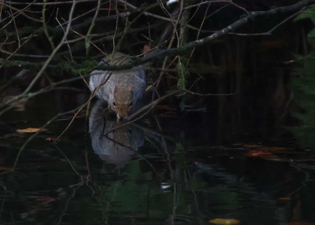 And a grey squirrel scrambled down to the water’s edge to take a drink. I’ve never seen that before.