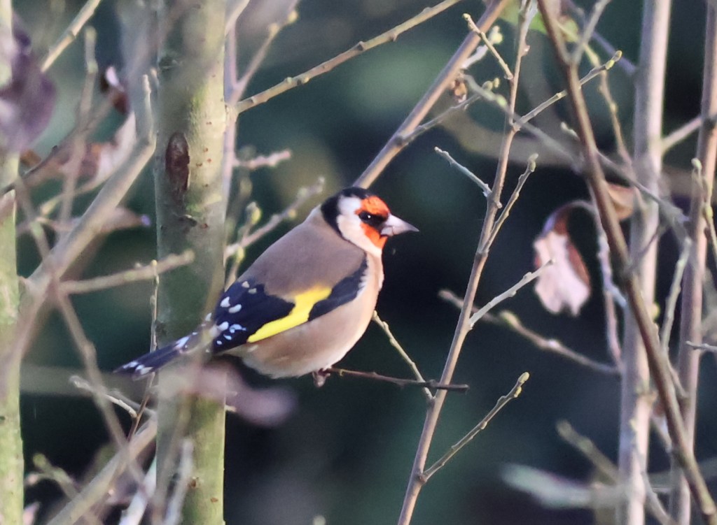 Finally some goldfinches were twittering amongst the seed heads on the canal banks. They were showing off their splendid colours in the late afternoon sun.