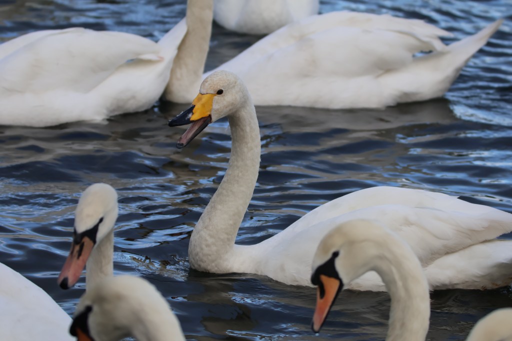 In amongst the mute swans at Hogganfield Loch was this very cheery looking whooper swan. Whilst the mutes had their beaks closed this one had his open most of the time, maybe this youngster was extra hungry having flown in from Iceland. It looked like he or she was grinning.