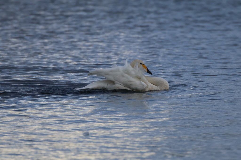 There was one other whooper swan on the loch, preening further out.