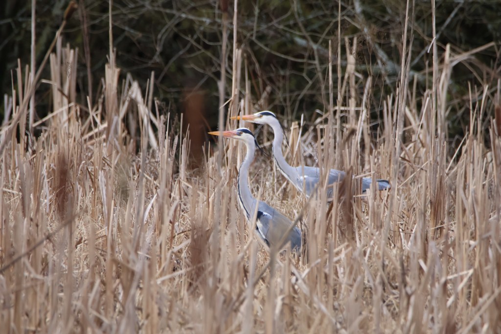 This pair of herons were in amongst reeds by a pond. I wonder if they were foraging for frogs.