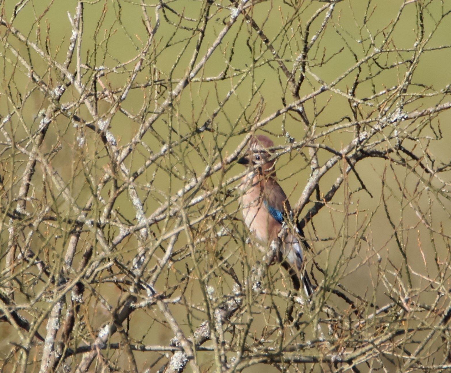 At last, a dry day with morning and afternoon walks in the countryside with my camera and binoculars! Today I saw four jays and even managed to get this photo of one, albeit with branches in the way. They alerted me to their presence by squawking to each other.