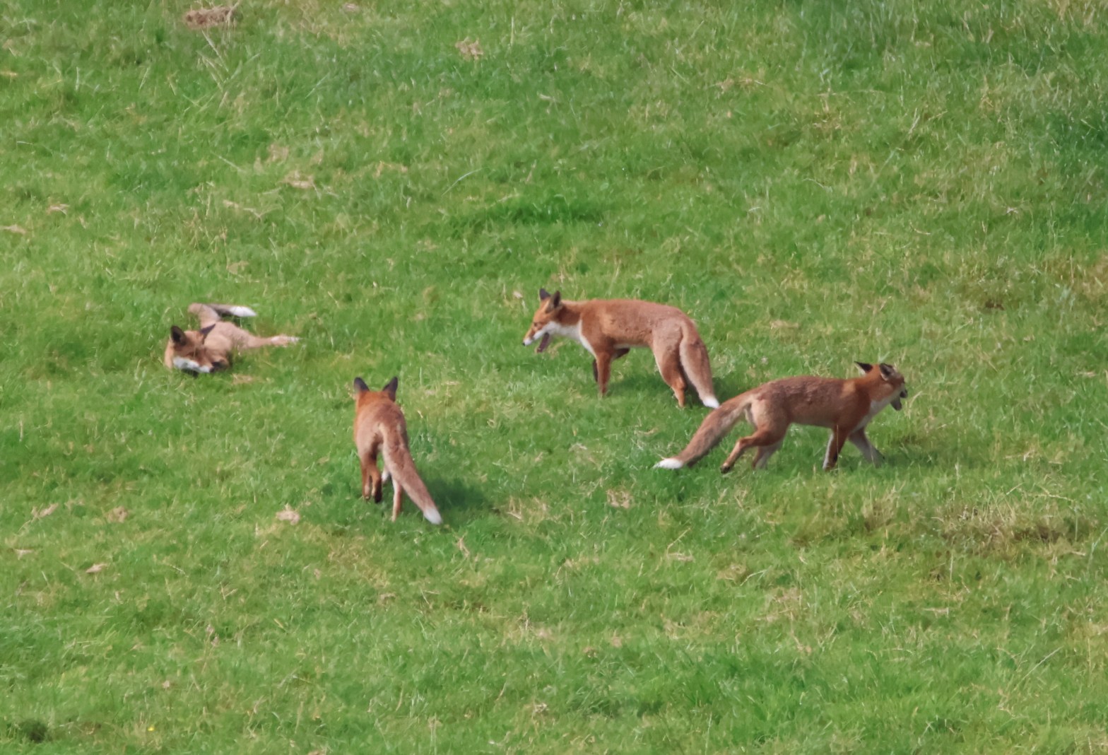 I was walking by the river Kelvin today hoping to catch sight of a kingfisher. None was seen but I was delighted to spot four cavorting fox cubs in a field on the other side of the river. What an absolute joy to watch them at play, chasing, leaping, wrestling and rolling. They were aContinue reading “Fabulous Fox Cub Foursome”